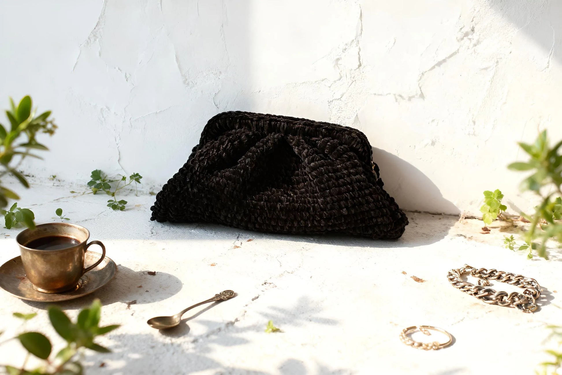 🖤 Chic & Trendy: Hand-crocheted in a cloud silhouette, this black velvet clutch is perfect for winter evenings and stylish outings.